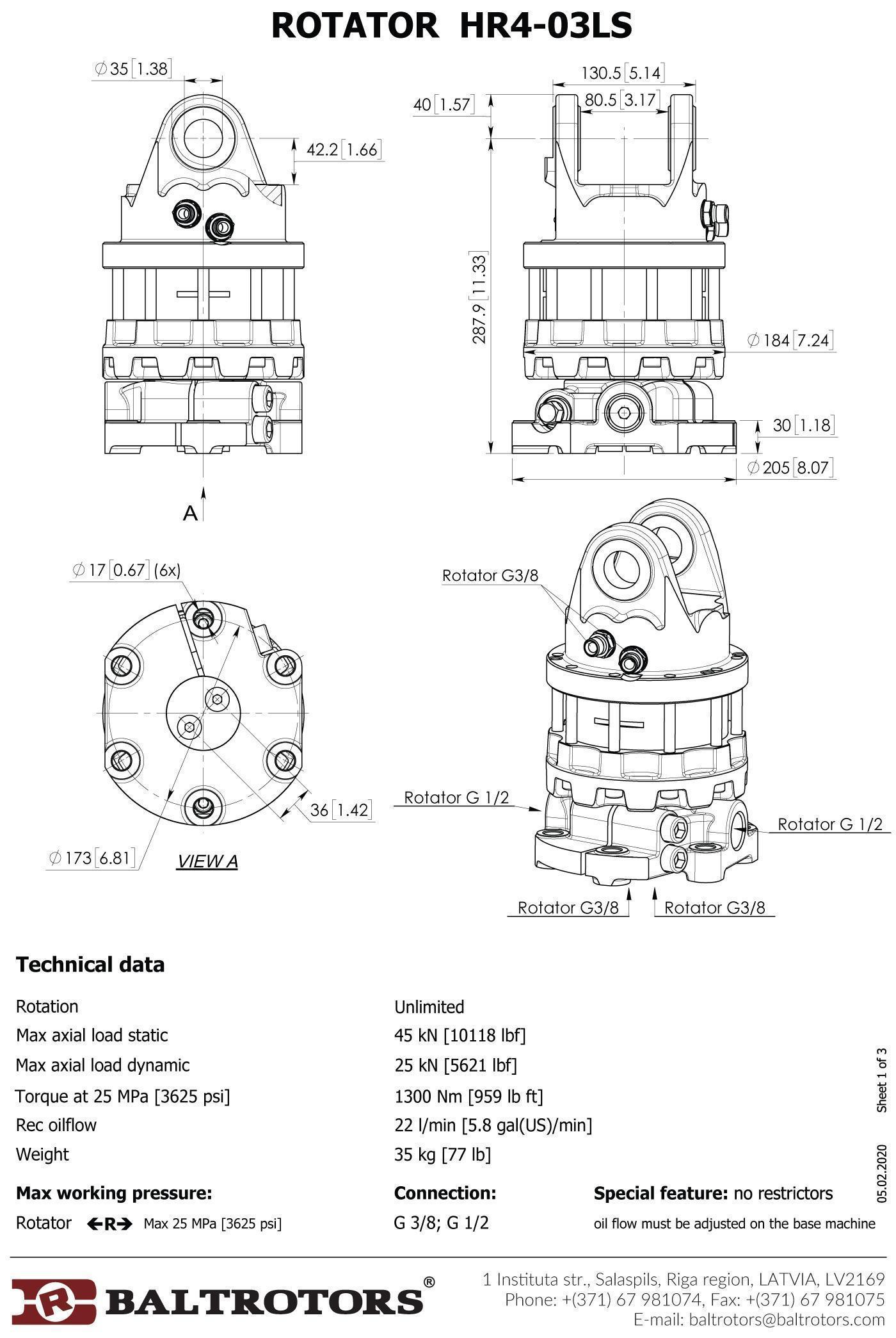 Rotator specially designed for the thinning harvester heads. Not equipped with restrictors.