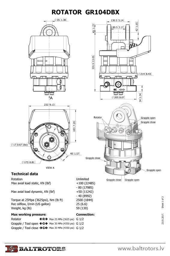 Modification of GR104DB rotator, equipped with extra-durable arched hose guard for even better protection of hoses.