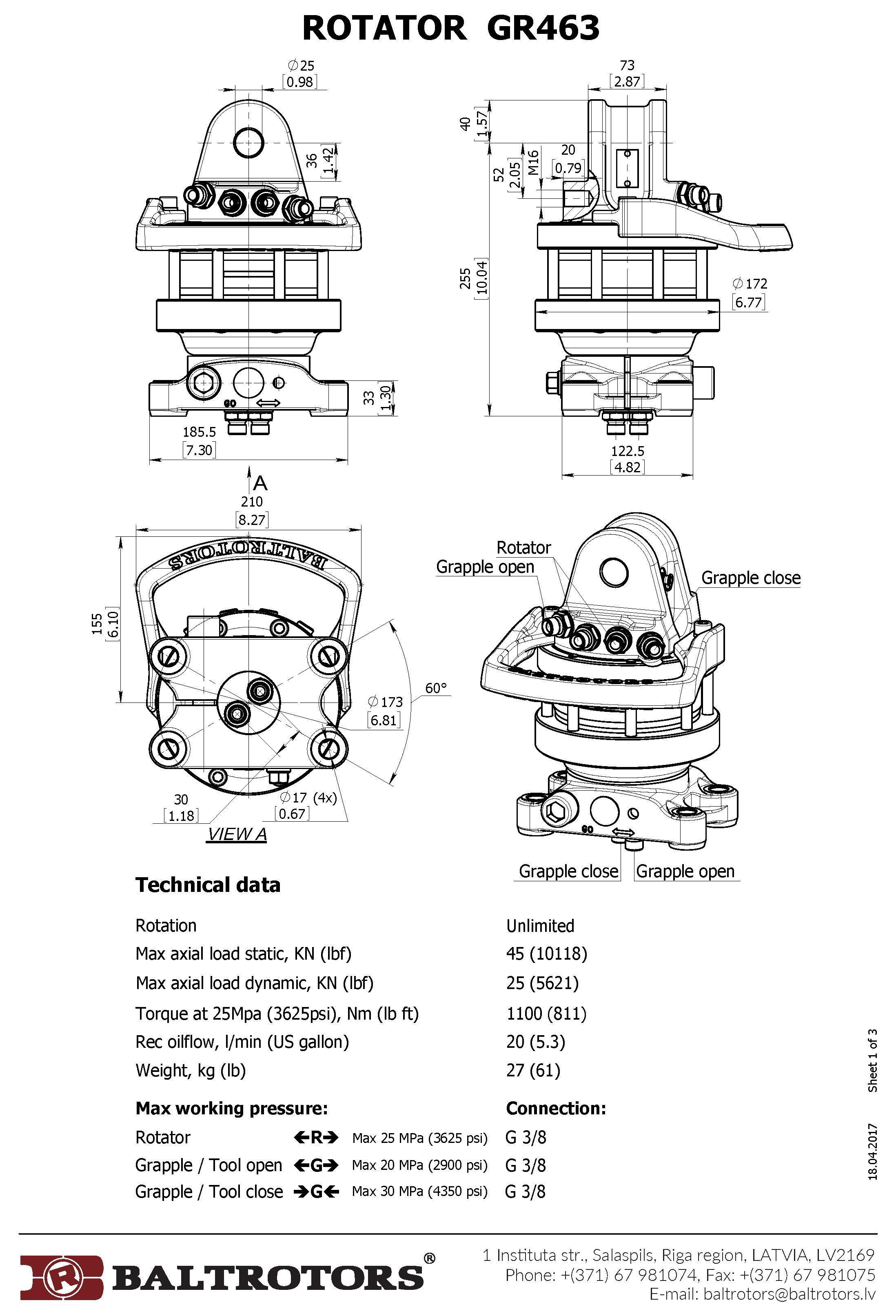Modification of GR46 rotator with “rectangular" 173 mm flange-type lower connection.