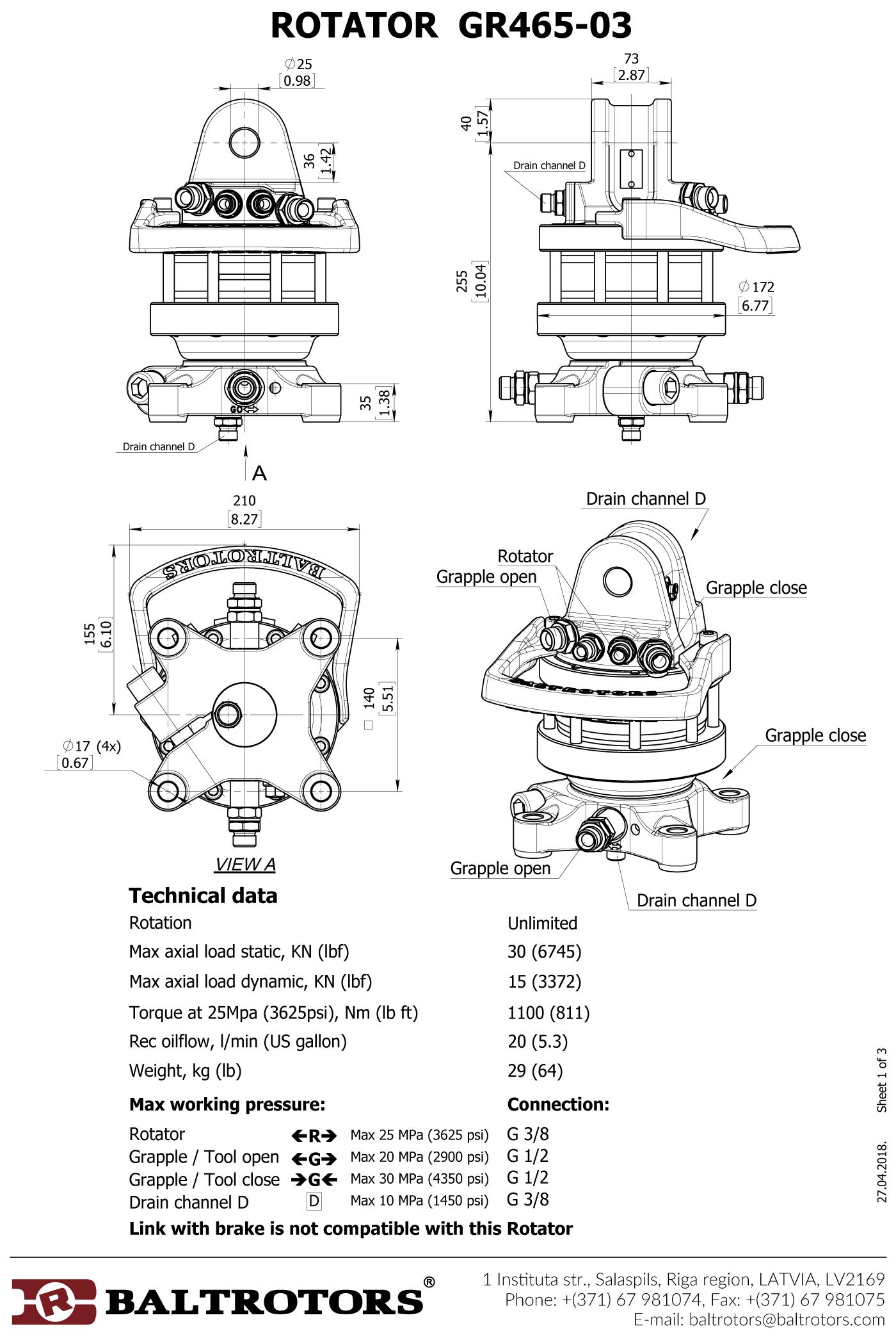 Modification of GR465 rotator, equipped with additional drain channel.