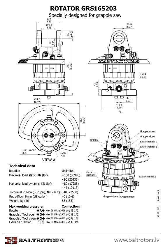 GRS stands for Grapple Rotator for Saw, solution with extra channels